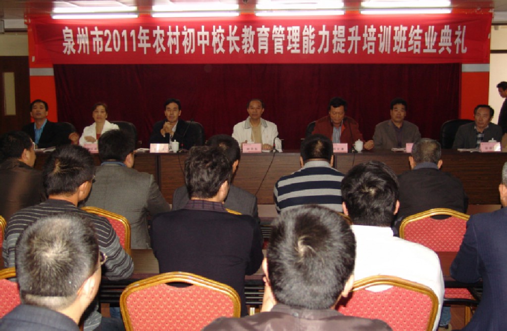 12月8日上午,2011年泉州市农村初中校长教育管理能力提升培训班结业典礼在我校举行。林华东副校长出席结业典礼。继续教育学院院长郑文谦主持结业典礼。