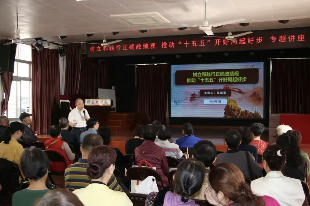 3月25日,泉州市退教协会举办“思政讲坛”2026年度第一讲,我校退休教师代表受邀参加活动。本次讲坛以“树立和践行正确政绩观,推动‘十五五’开好局起好步”为主题,特邀泉州市数据管理局原党组成员、泉州市大数据服务中心原主任吴彧寰作专题辅导讲座。