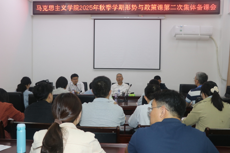 10月23日,2025年秋季学期《形势与政策》课第二次集体备课会召开,讨论第二专题教学设计。校党委副书记陈晓风、马院负责人与全体授课教师参加。