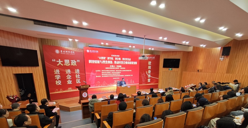 活动最后,党员教师在泉州师范学院南安校区黄仲咸报告厅,参加由匹克集团董事长许景南主讲的大思政“三进”专题讲座《科技赋能与理念创新:推动民营企业高质量发展》。讲座立足民营企业发展实践,贯通国家政策导向与产业发展前沿,系统阐释创新驱动发展战略在民营经济中的落地路径,为高校教师拓展教学视野、提升课程思政建设实效提供了宝贵的实践借鉴。