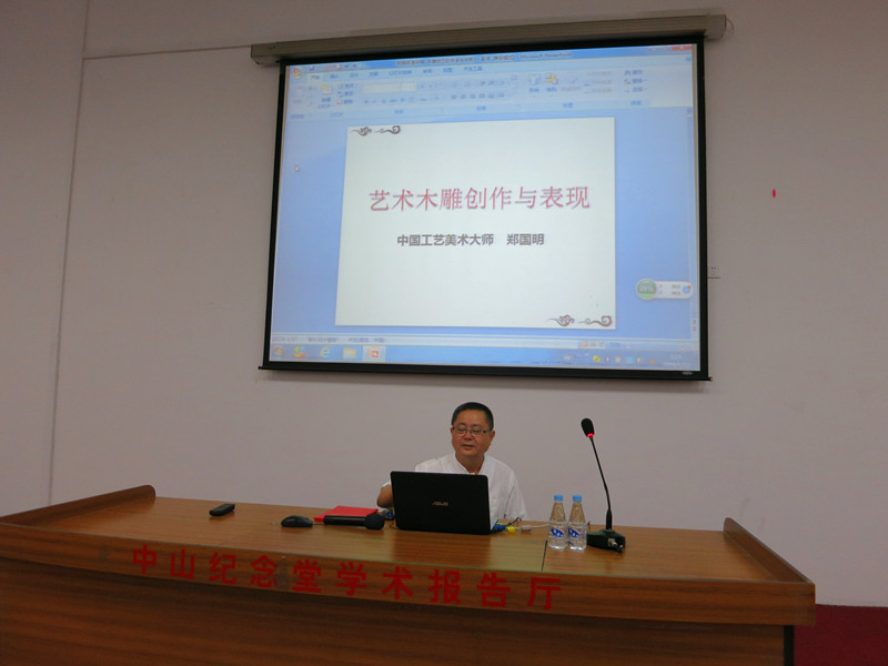 5月20日,为庆祝我校建校57周年,美术与设计学院和泉州市城镇集体工业联合社在孙中山纪念堂联办首场“大师讲坛”,主讲人是国家级工艺大师郑国明,主题为“艺术木雕创作与表现”。