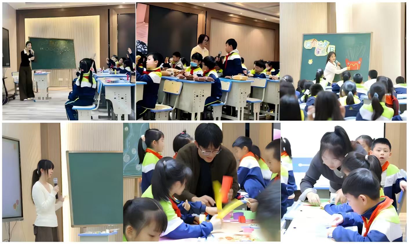 在基地教师的悉心指导下,余泓、谢依娜、邹莹莹、陈如煊、卢仕博、张文璐六位实习生,依次呈现了《泥巴罐》《这个地方有点怪》《编织乐陶陶》《纸条游乐场》《小人国》《泡泡乐》六节优质美术课,覆盖小学低段与中段学段。课程紧扣《义务教育艺术课程标准》要求,深度契合国家“以美育人、以文化人”的美育核心理念,既注重课堂体验的趣味性,更强化知识学习的融合性,实习生们巧妙融入AI数字技术、文学意象、物理原理、音乐韵律等跨学科资源,打破传统美术课堂的学科壁垒,落实“五育并举”要求,引导学生在动手实践中发现美、在情境体验中理解美、在创意表达中创造美,有效提升了学生的审美感知、艺术表现与文化理解能力。