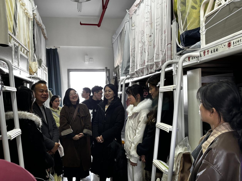 走访期间,老师们同步开展学生宿舍安全专项检查,聚焦用电规范、防火防盗等关键环节逐项排查隐患,叮嘱同学们绷紧安全弦、筑牢防范线,自觉遵守宿舍管理规定,切实守护好自身与他人的生命财产安全。同时强调,宿舍是学院创建温暖集体的重要阵地,也是展现学院学子精神风貌的重要窗口,要自觉维护环境卫生,涵养和谐友爱的氛围,以安全、整洁、文明、和谐的宿舍风貌,推动学院温暖集体创建活动蔚然成风、走深走实,助力学生全面成长成才。