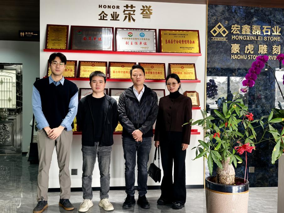 在大翔石业和豪虎石材有限公司,负责人详细介绍了企业在石材艺术设计、工艺创新及市场应用等方面的最新成果。双方围绕艺术设计与石材产业的融合发展、人才培养与岗位需求的精准对接等议题展开深入交流。