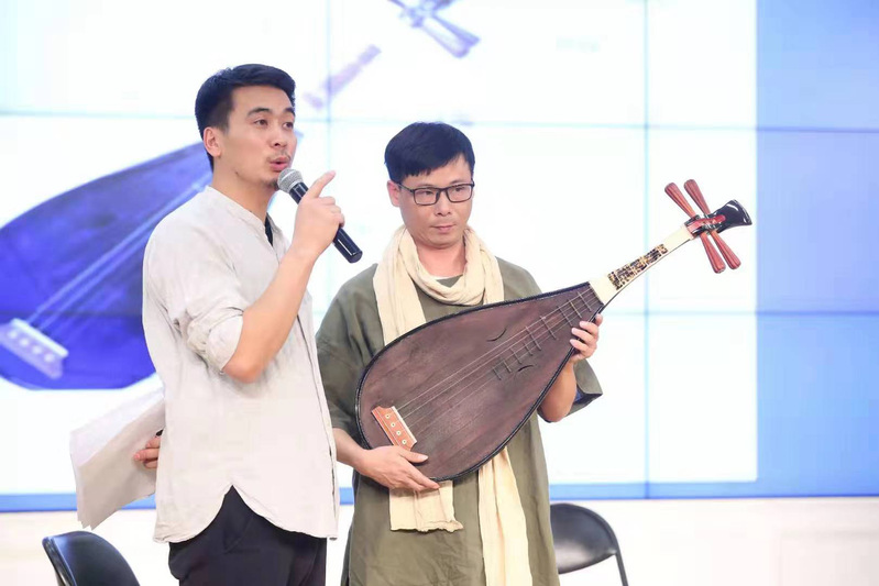 “讲座+音乐会”模块活动,题名为《南音—— 一个可以聆听到古代音乐的乐种》。活动前半场,由泉州南音学院南音系林立策博士担任主讲,简要介绍了学界关于南音源流的几种论说,以及南音的音乐类型、表演程式、乐器编制等,并深入介绍、展示了每一件南音乐器的形制、音色、演奏方法和文化内涵等。活动后半场,由泉州南音学院南音系副主任、副教授、硕士生导师陈恩慧老师领衔,携蔡清雅和黄欣欣两位南音本科生,南音校友会陈祝平和郑江南两位优秀校友,以及特邀李建瑜和吴文俊两位民间南音传承人,遵照传统南音“指—曲—谱”的表演程式,表演了指尾《霏霏飒飒》、曲《莲步轻移》《一身》《感谢公主》、谱《梅花操》。这一模块活动,集南音理论讲解和南音表演实践于一体,两者互补说明,使大家可以较直观、立体地了解南音的基本面貌。