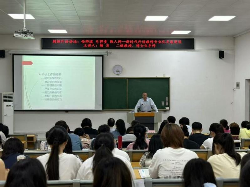 近日,刺桐外语讲坛在外国语学院112梯教举行。学院邀请了东北师范大学原副校长杨忠教授开设“悟师道,尽师责,做人师——新时代外语教师专业化发展漫谈”的专题讲座。全体教师及部分英语(师范类)专业学生参加本次讲座