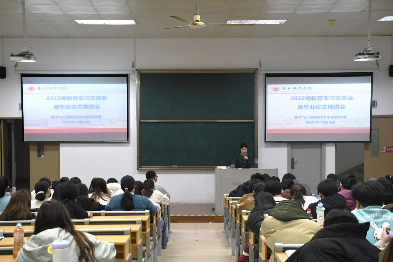 为全面总结教育实习成果、推进毕业论文工作进程,助力学生明确职业发展方向,1月15日晚,我院数学系在理工楼419教室召开2022级教育实习交流会暨毕业论文工作推进会。数学系主任郑雪静、副主任赖宝锋、秘书张杰、辅导员孙桢怡及全体2022、2023级数学系学生参会,会议由李佳怡同学主持。