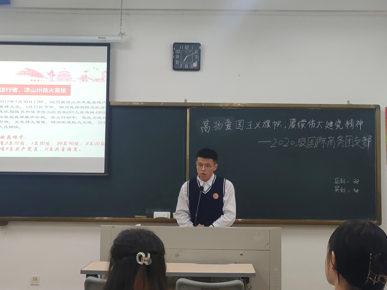 2020级物流专业同学以党史问答的方式,再次学习了“七一”建党的历史背景及意义;2020级经济学专业同学通过朗诵《我和我的祖国》抒发了深厚的爱国之情;2020级金融学专业同学通过观看《金刚川》电影片段,表达了对革命先烈的崇高敬意。