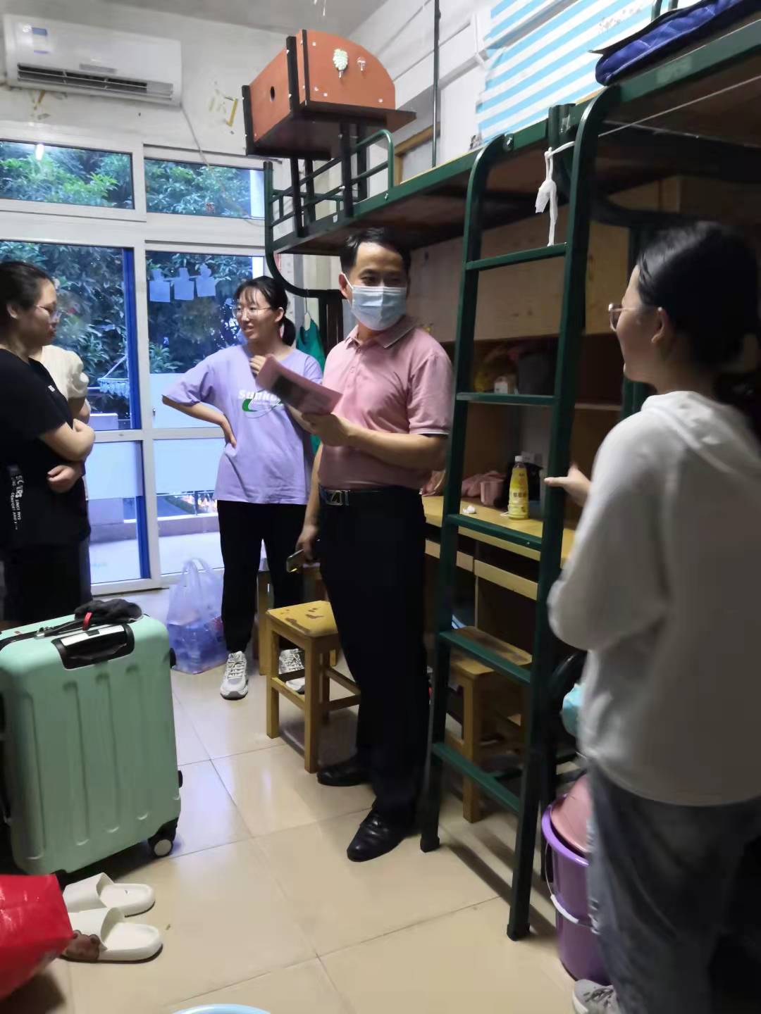 为充分了解掌握新生入学情况,帮助新生更快适应学校生活,10月13日下午,陈守仁商学院党政领导和全体辅导员分组走访新生宿舍,亲切看望2021级新生,第一时间为同学们送去温暖与关怀。