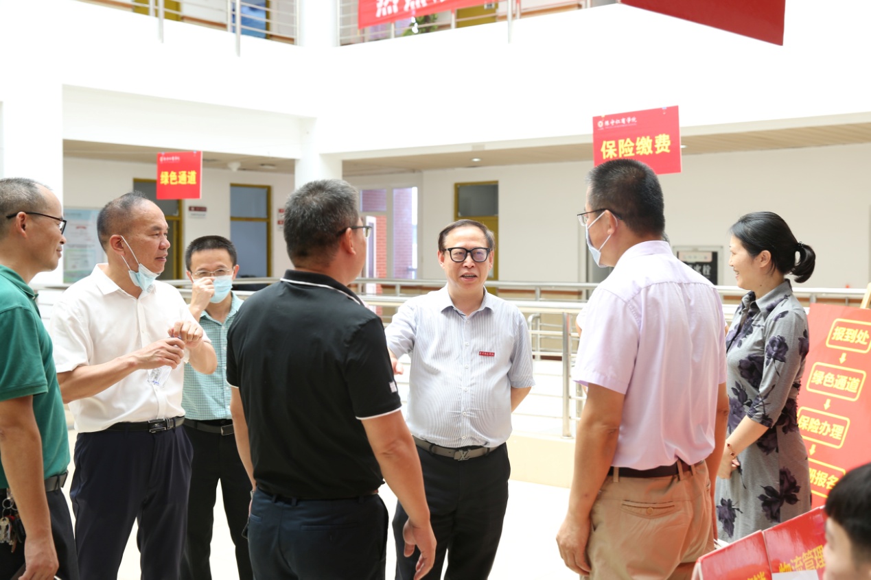 上午,校长屈广清、副校长陈亚兵、夏侯建兵等领导带领有关部门到商学院迎新现场检查工作,与2021级新生面对面交流,带来学校的问候与美好祝福。