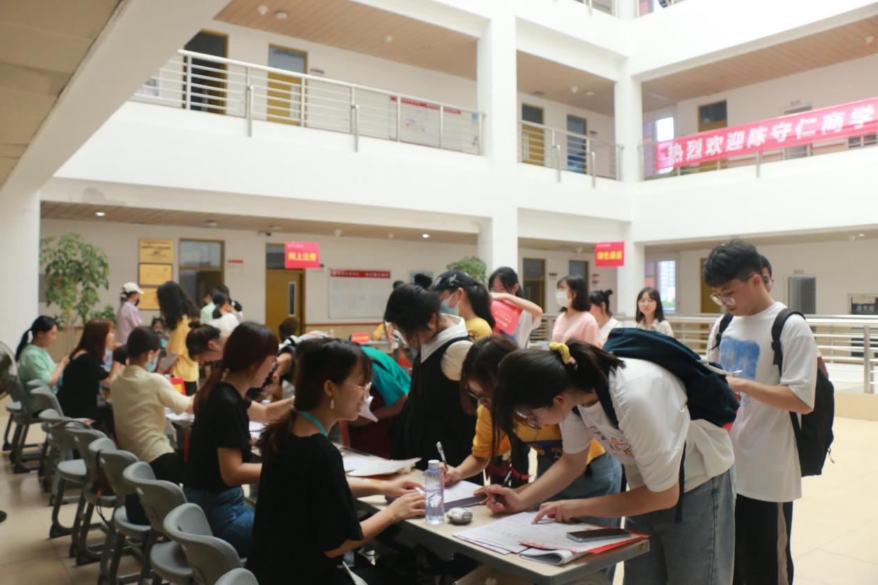 由于常态化疫情防控需要,今年新生家长不能陪同进入校园。为消除家长担忧,保证新生顺利入学报到,商学院组织各班助班和青年志愿者到校大门和各宿舍区入口,为新生提供周到服务。