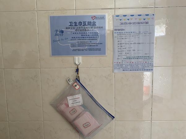 “爱与温暖结连理,你我携手同她行”,商院青协在文科楼的每间女厕所里设立卫生巾互助盒,盒内提供若干密封包装卫生巾、暖宝宝等物品。帮助突遇经期的女性快速避免尴尬,尽快解决突发状况,让她们更能集中精力投入学习生活中。卫生巾互助盒活动折射出了当代青年学生互爱互助的精神,体现了对女性的人文关怀。自2021年3月至10月,多达2000余人次受益该计划。