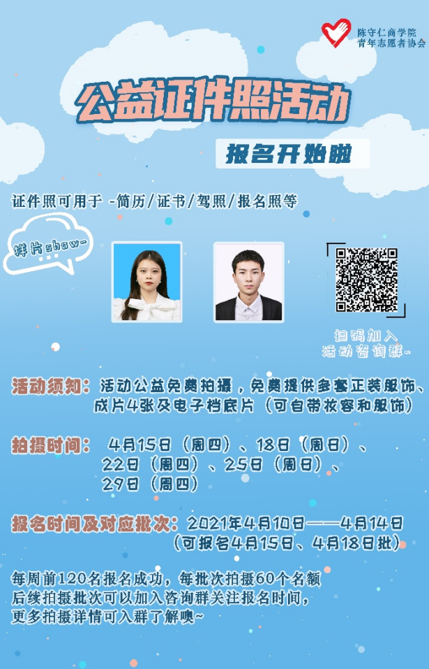 “一起青春憧憬,一起脱变见证”,在商院青协和志愿者的共同协作下,为同学们完成妆发、挑选正装,让参与者以最好的状态拍摄证件照。本次活动为同学们提供了具有“仪式感”的证件照,提高了同学们对简历求职照的重视程度,为大学生进入职场助力。参与该活动的志愿者达50多名,报名拍摄人次632人,成功受益同学超200人次,取得圆满成功,受到同学们的一致好评。