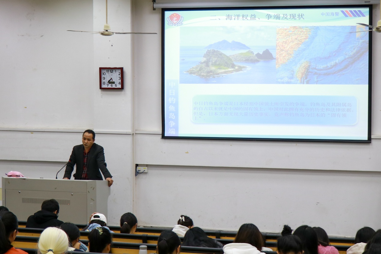 为强化我院大学生国防意识和观念,激发广大学生的爱国热情,促进学校国防教育工作深入开展,陈守仁商学院于11月22日在文B314召开国防教育主题班会。本次班会主题为“浅谈我国海洋形势及维权执法现状,激发新时代大学生的伟大爱国热情”。会议分两批召开,主讲人为我校军转培训班学员陈谋堂。