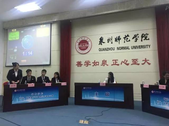 5月5日晚,泉州师范学院2017年校园辩论赛决赛在中山纪念堂报告厅举行。泉州市演讲与口才协会会长、泉州医学高等专科学校党委副书记耿永泉老师;小树林教育创始人、温陵书院名誉院长、泉州市演讲与口才协会副会长吴素明老师;泉州师范学院语委副主任、国家级普通话测试员王勇卫老师以及校辩论队翁森老师担任本次决赛的评委。校团委书记傅志雄老师出席了活动。
