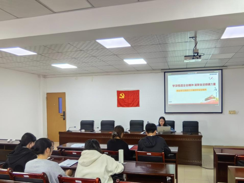 辅导员林晓琳以“学深悟透全会精神 凝聚奋进磅礴力量”为题,传达学习贯彻党的二十届四中全会精神。林晓琳围绕 “十五五”时期发展总体要求,结合生态环境保护、资源高效利用等领域实践案例,用通俗语言解读“高质量发展”“共同富裕”等关键论述。通过“政策解读+专业对接”的方式,引导学生理解全会精神的实践意义,明确青年在中国式现代化建设中的责任担当。