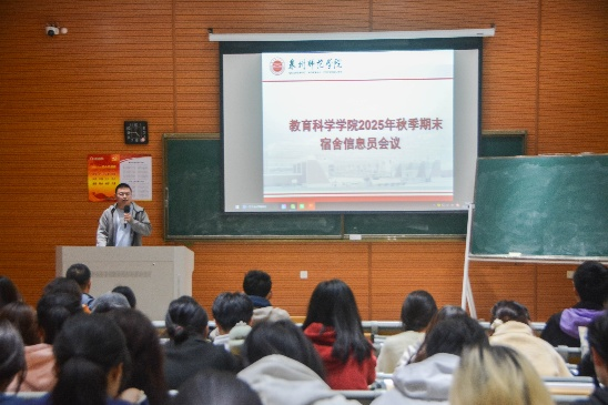 为进一步压实宿舍安全管理责任,畅通安全信息反馈渠道,切实保障学生住宿环境安全稳定,近日,我院召开宿舍信息员安全工作专题会议。学院党委副书记刘宗安出席会议并讲话,各专业辅导员、各班班长、生活委员、院学生会生活部成员及全体宿舍长参加会议。