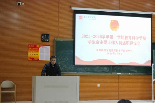 为深入贯彻落实习近平总书记关于青年工作的重要思想,贯彻落实习近平总书记致全国青联第十四届全委会、全国学联第二十八大的重要贺信精神,贯彻落实共青团中央、教育部、全国学联联合下发的文件精神,深化学生会组织队伍建设。1月8日下午,我院在特教B108召开2025-2026学年第一学期学生会主要干部述职评议会,学院党委副书记、纪委书记刘宗安,团委书记、学工办主任吴蕙蕙,全体团委委员、辅导员出席会议,院级学生骨干参与会议。