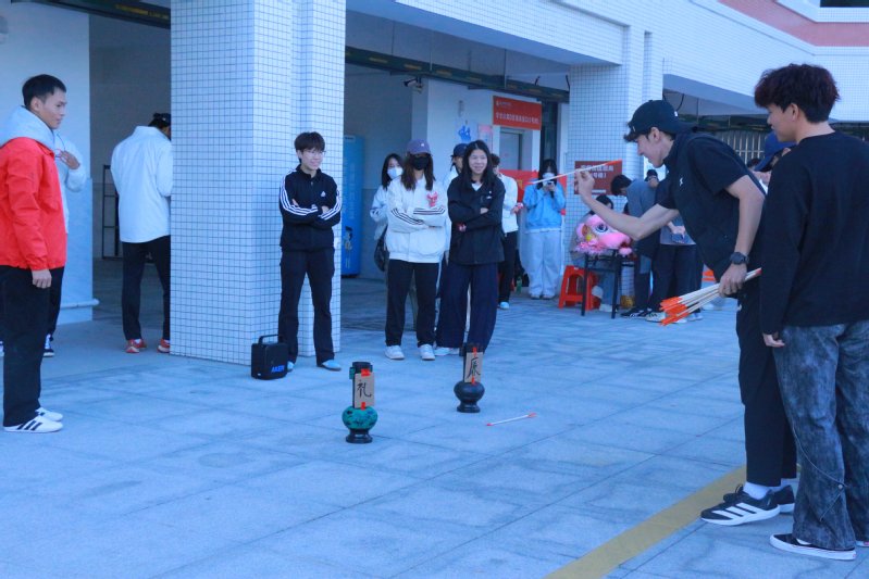 活动设置四大特色体验项目,兼具传统雅趣与体育活力。“投壶问礼”现场,同学们屏气凝神、精准投掷,在方寸之间体悟传统礼仪的规矩与内涵;“武动清风”环节,一招一式刚劲有力,尽显青春正气,让廉洁自律的理念深入人心;“龙狮呈祥”时,铿锵鼓点与灵动狮舞相映成趣,同学们协作配合、默契十足,充分展现团队凝聚力;“蹴鞠接力”赛中,大家奔跑传递、奋勇争先,践行着协作公平的体育精神。