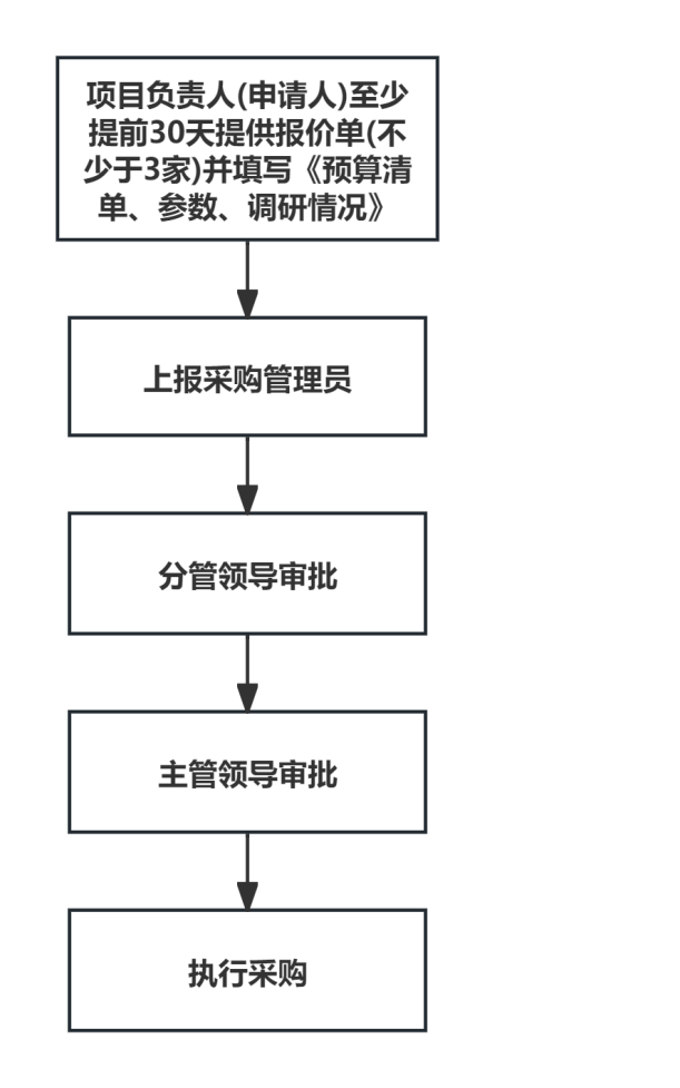 项目负责人(申请人)在充分市场调查的基础上,经工作组组长或院长审批后,可根据需要直接采购,入库、付款按照学校相关规定执行。