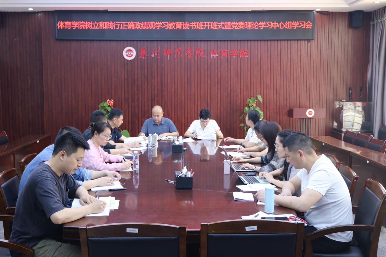 4月13日,体育学院在陈伟利体育馆会议室召开树立和践行正确政绩观学习教育读书班开班式暨党委理论学习中心组学习会。院领导许月云、郑少君、李遵义、王伯余,三办负责人,各专业主任参加会议。会议由院党委书记郑少君主持。