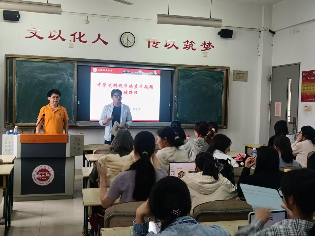 2025年5月26日,石狮市石光中学胡志章老师应邀走进泉州师范学院历史系,以“中学史料教学的瓶颈与突破路径”与“部编版高中历史教材文本分析及教学实践”为题,开展专题学术讲座。本次讲座由历史系主任刘智豪教授主持,吸引了60余名历史系学生积极参与,现场学习氛围热烈浓厚。