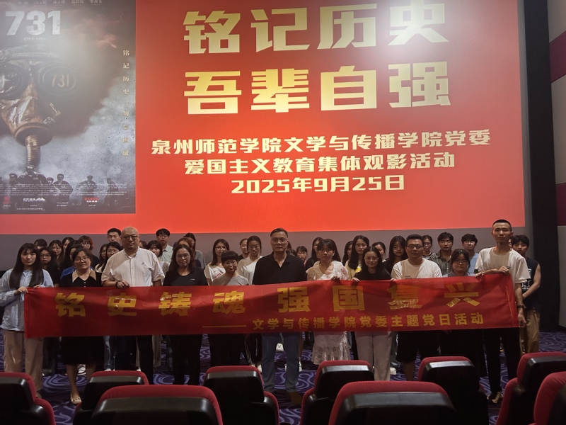 为引领全院师生铭记历史、缅怀先烈,传承爱国主义精神,9月25日下午,文学与传播学院党委组织师生前往中影国际影城开展“铭史铸魂 强国复兴”主题党日活动,集体观看爱国主义题材电影《731》。