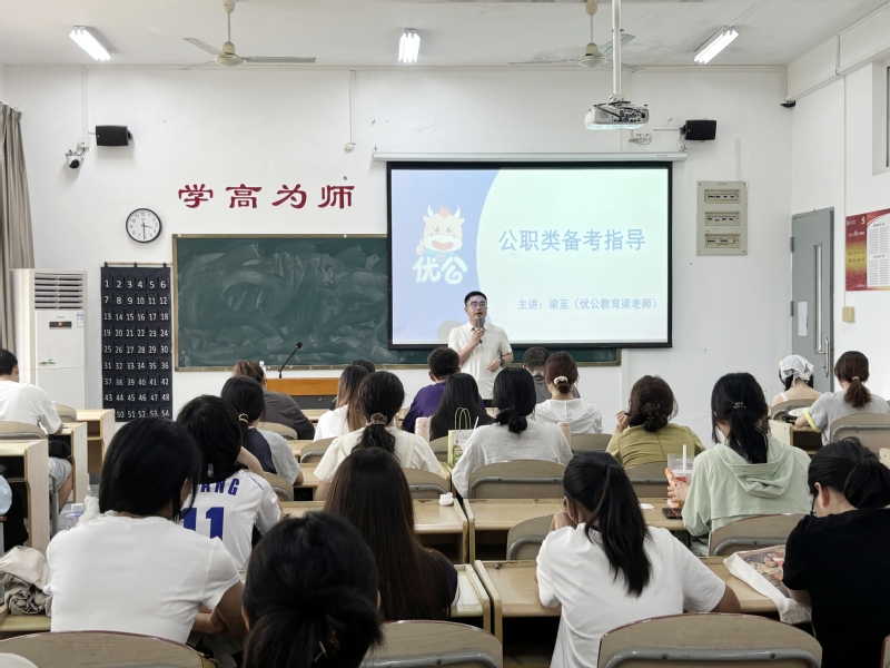 为帮助我院学生全面了解考公形式,掌握备考技巧,9月18日下午,文学与传播学院特邀优公教育梁至老师,在俊秀东楼312教室开展2026年公职类备考专场讲座。