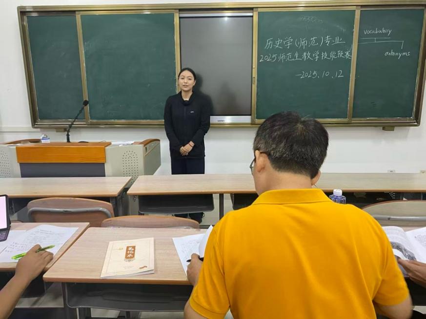 为进一步提升历史师范生的教学能力与专业素养,10月12日下午,历史系在俊秀东楼306教室举办了2025年省师范生教学技能大赛(初中历史组)校内预赛。本次活动由历史系主任刘智豪教授、城东中学高明爽老师、石光中学胡志章老师共同担任评委。历史系陈海蓉老师及部分师生到场观摩,共同见证了师范生成长与教学风采的精彩展示。