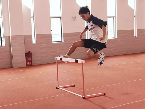 跨栏组:栏间穿梭如燕,赛道驰骋如风。赛道铺陈,栏架依次排开,25级新生陈宇梁不惧碰栏摔倒的风险,在一次次全力冲刺中精进攻栏姿势。他说:“如果用一个关键词形容这段训练的日子,我会选择‘奋进’,是它时刻提醒我继续努力,让我更加坚定在运动会中取得佳绩,为学院争光的信心。”那道不惧挑战、勇往直前的奔跑身影,已然成为赛道上最亮丽的风景。