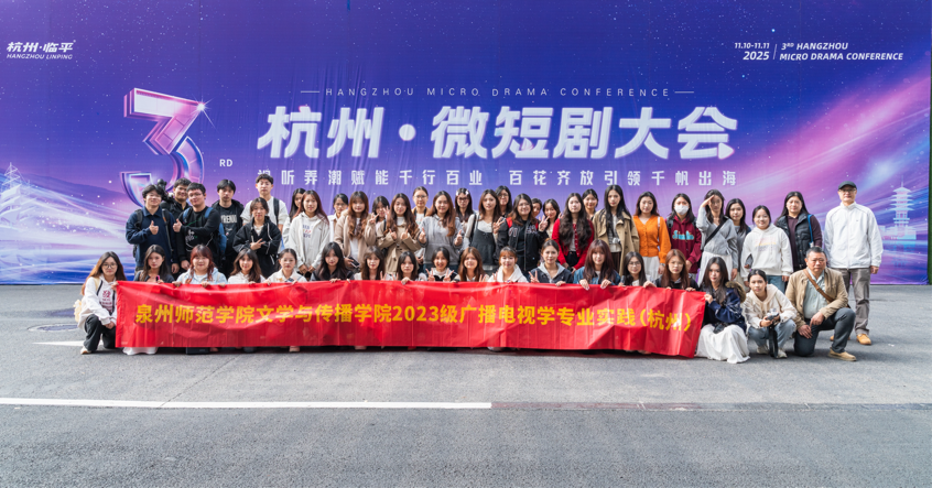为了让学生更好地将课堂所学与行业实际相结合,2025年11月10日至11日,在郭泽青、宋天瀚、张文心等三位老师的带领下,文学与传播学院2023级广播电视学专业的45名学子,以“实地参访+行业对话+文化体验”的形式开展专业见习活动。先后走访了杭州临影厂和杭州市萧山绍剧艺术中心,既解锁短剧创作幕后密码,又深耕传统戏曲艺术精髓,在“前沿产业+传统文化”的双向探索中收获满满。
