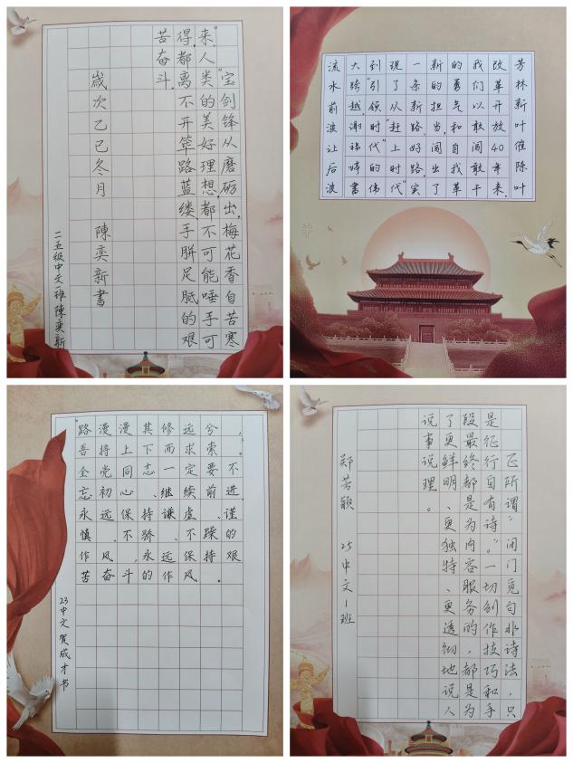 此次书法比赛是我院学生第一党支部持续打造“跟着习近平总书记学诗词”党建品牌的特色活动载体,是支部强化思想引领、传承优秀传统文化的又一次生动实践,激励着支部学子以青春力量传承文脉,书写当代青年的奋斗篇章。