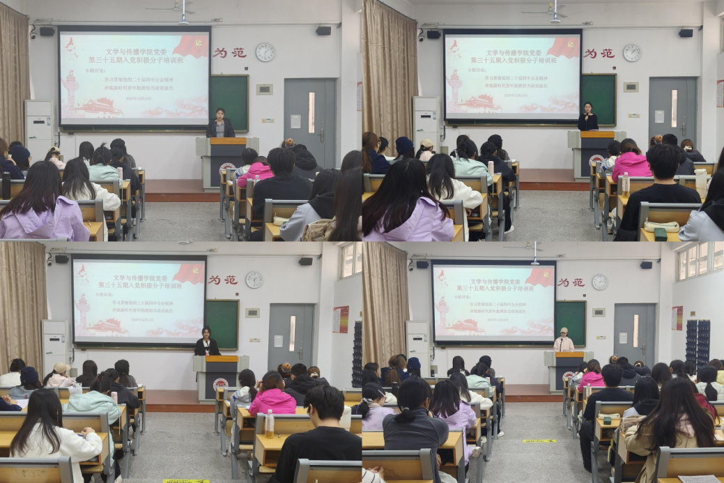 为引导入党积极分子深入学习贯彻党的二十届四中全会精神,淬炼新时代青年的使命担当,12月12日,文学与传播学院在俊秀东楼109教室开展“学习贯彻党的二十届四中全会精神,淬炼新时代青年挺膺担当奋进底色”小组讨论活动。