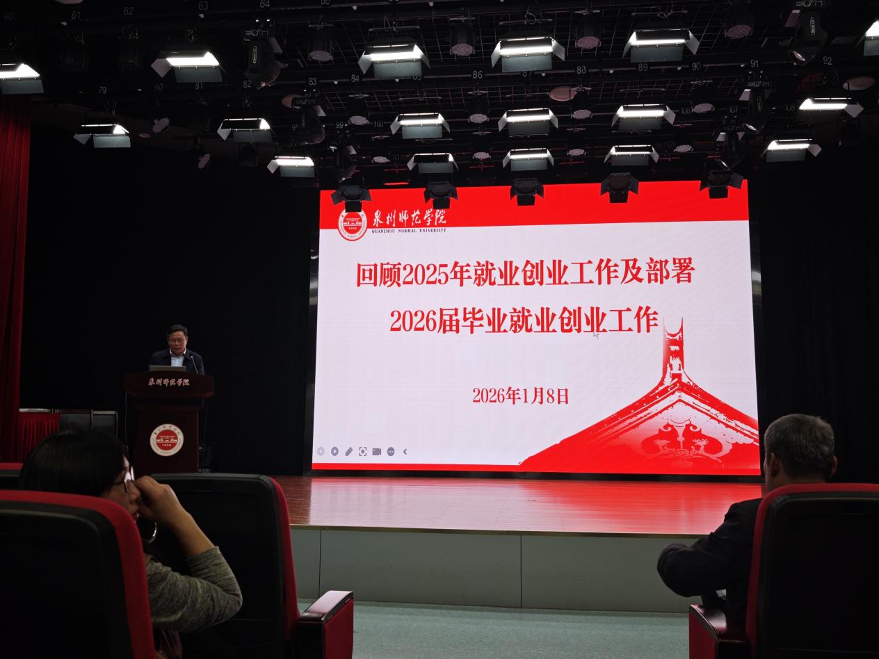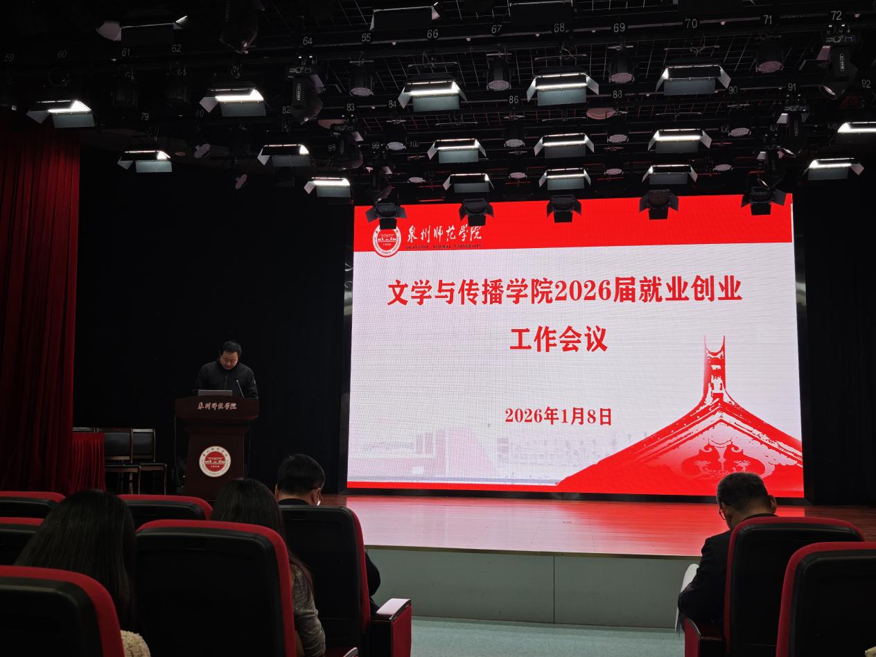 1月8日,文学与传播学院在俊秀演播厅召开2026届毕业生就业创业工作会议。会议由院长王勇卫主持。学院党政领导班子成员、全体教职工参加会议。