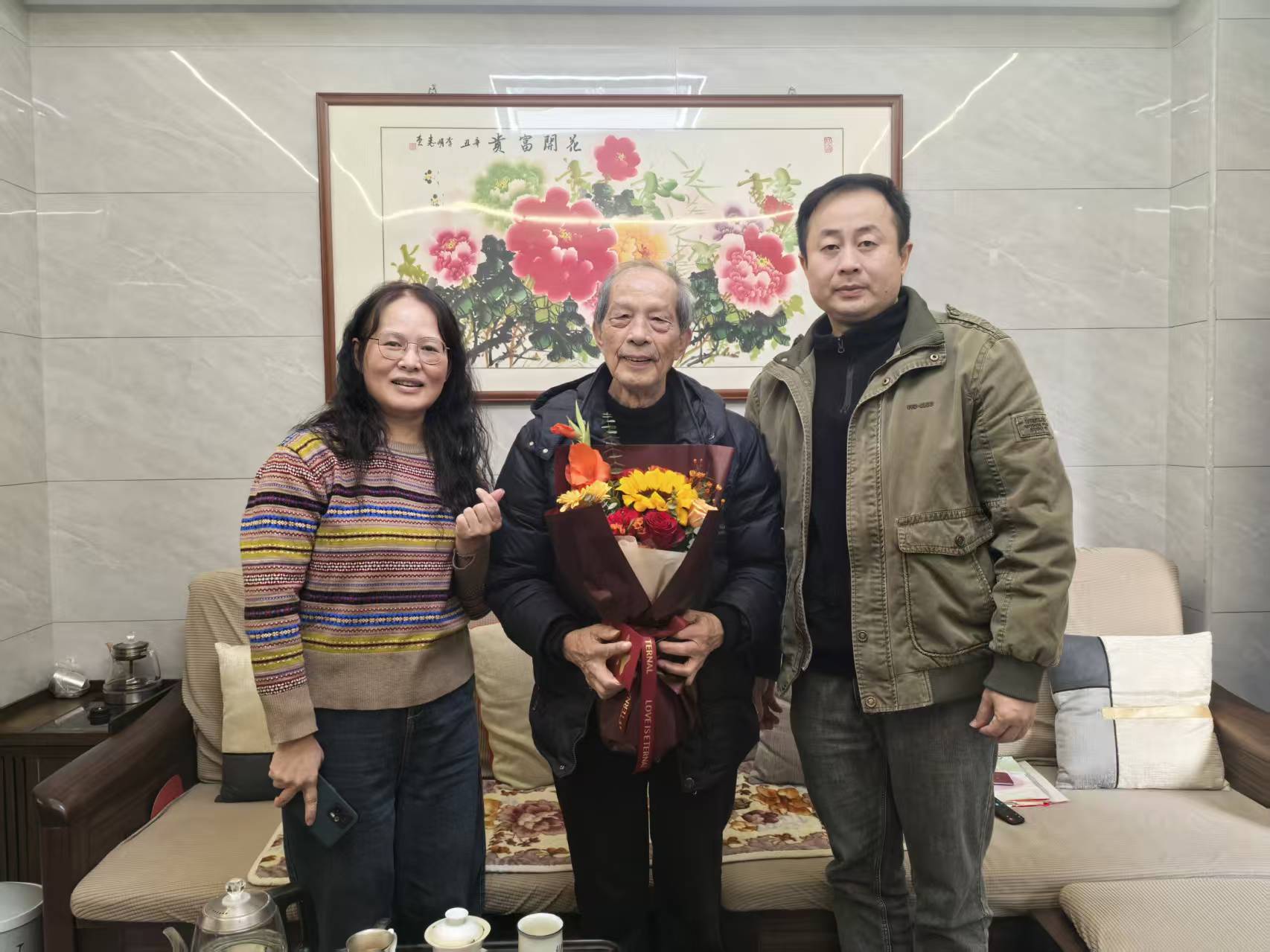 慰问过程中,院长王勇卫看望了吴幼雄、谢民昭两位老师,关切询问他们的身体状况与生活情况,并向他们介绍了学院近期在学科建设、人才培养等方面取得的新进展。王勇卫表示,两位老师长期耕耘在教学科研一线,为学院的建设与发展作出了重要贡献。两位退休教师对学院的关心表示感谢,并对学院发展提出了建议,鼓励青年教师继续守正创新,推动事业发展。