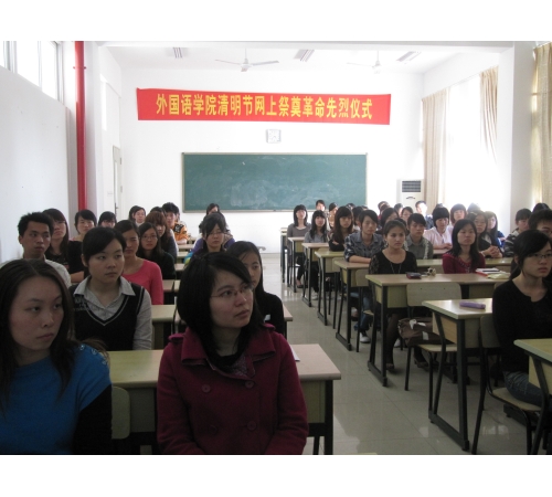 外国语学院党总支已经连续五年举行网上祭奠先烈仪式,引导同学们慎终追远、缅怀先辈,并在学生中营造出弘扬先进传统文化、继承优秀革命传统的良好氛围,使师生们在缅怀中得到社会主义核心价值体系教育,不断增强学生爱校、爱党、爱国、爱社会主义的理想信念。