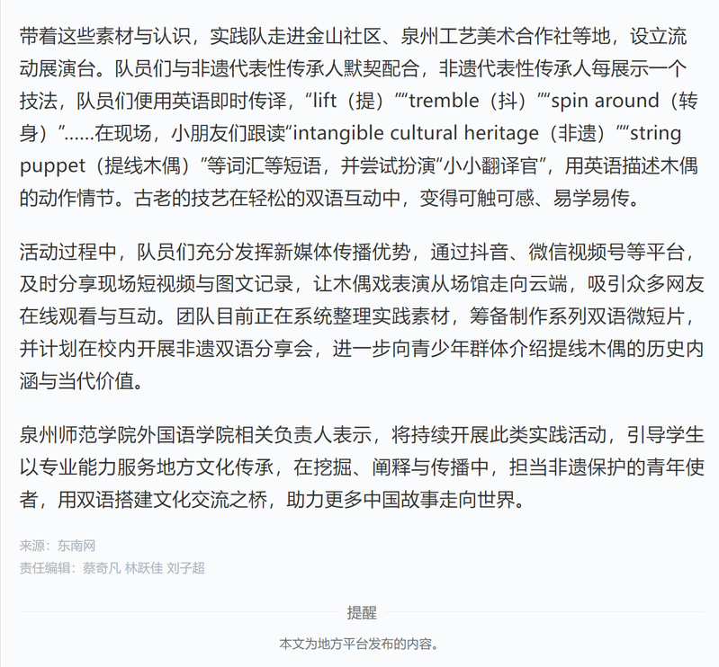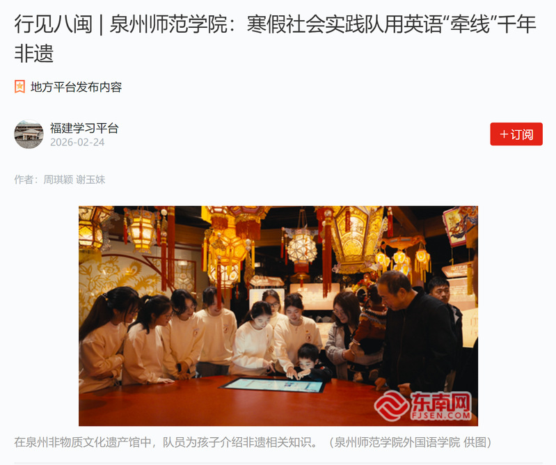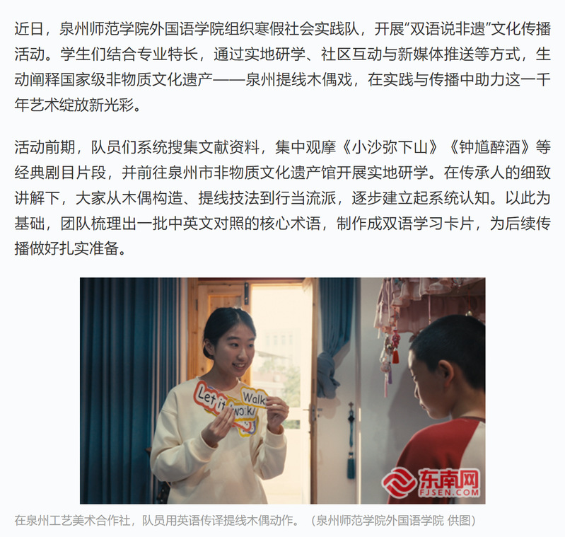 学习强国:行见八闽 | 泉州师范学院:寒假社会实践队用英语“牵线”千年非遗