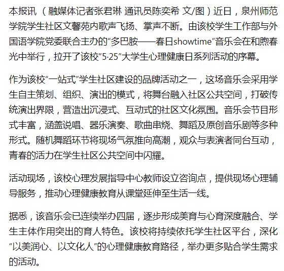 泉州晚报:春日音乐旋律 奏响心灵乐章