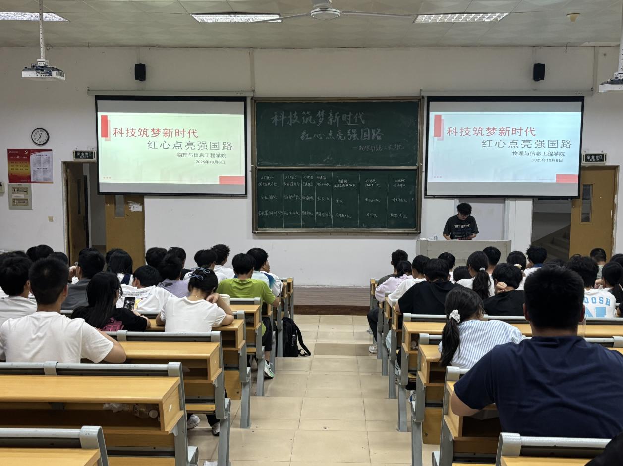 为弘扬爱国主义精神,激发青年学子爱党报国情怀,10月8日晚,我院在理工楼218教室举办“科技筑梦新时代,红心点亮强国路”主题教育活动,各年级共130余名学生参与。