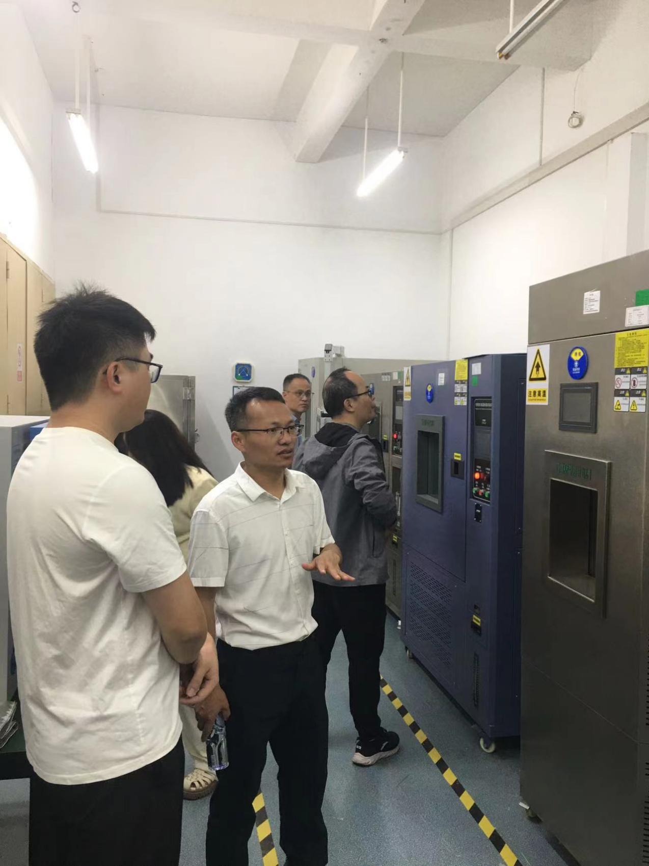 在企业负责人郭增辉的陪同下,学院一行实地考察了企业核心实验室。该实验室同时具备CNAS与CMA测试认证,以一站式检验检测服务为核心,构建了“无线电”“智能安防”“电网”及“电液伺服”等检测平台,整合专业人才与行业资源,提供可靠性、安规、射频一致性、EMC、智能配电网及性能测试等服务,为企业和科研机构提供检测、认证与标准研发等解决方案,广受市场认可。