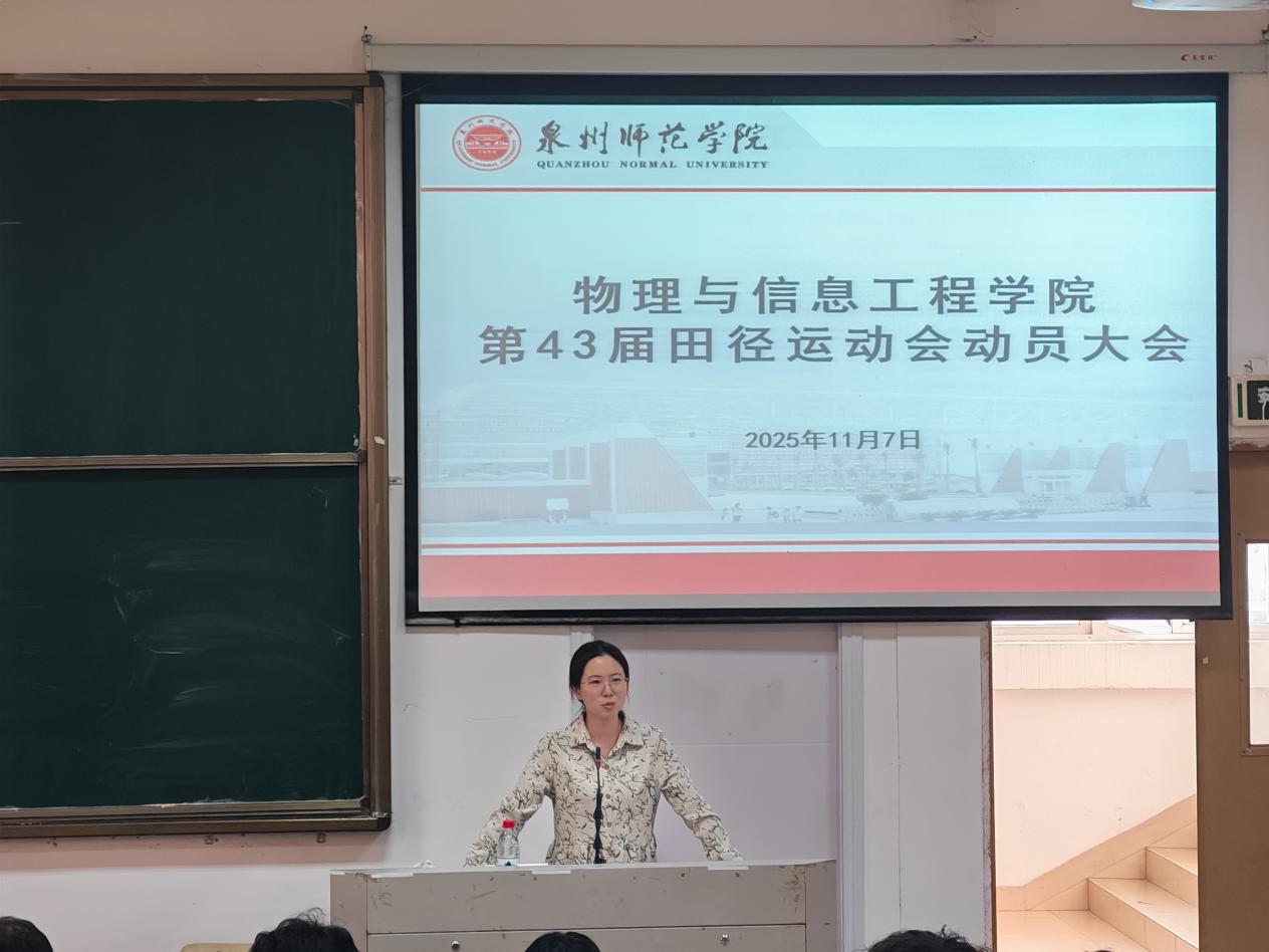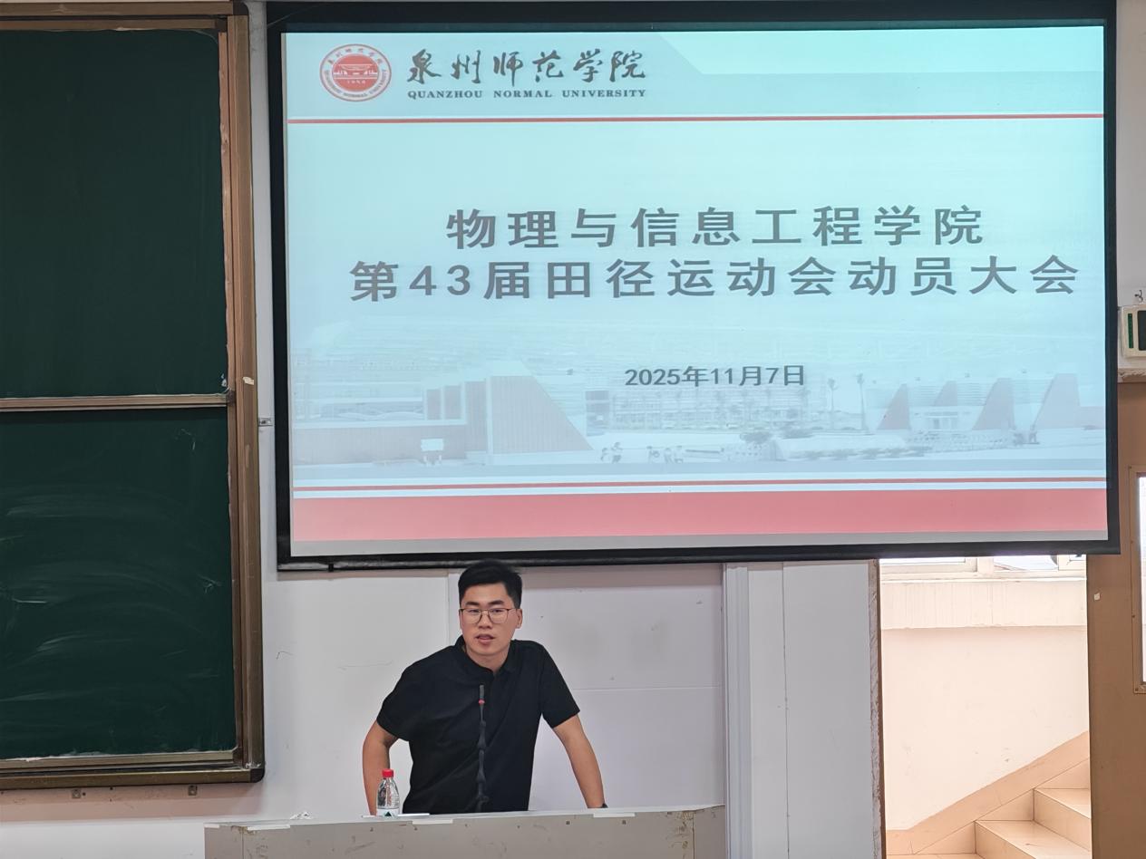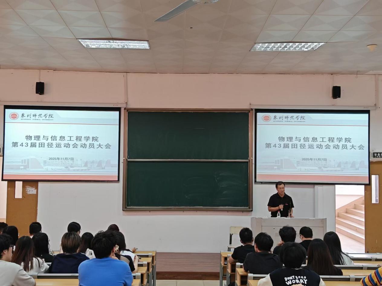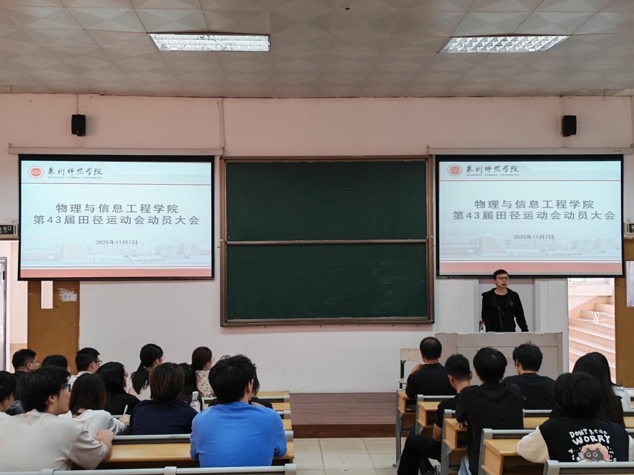 为激发师生参与热情、凝聚备战合力,2025年11月7日中午,我院在理工楼218教室召开第43届田径运动会动员大会。学院党委副书记洪荣文、辅导员以及团委学生会、自律会、青协、易班学生主干等70余人参会。