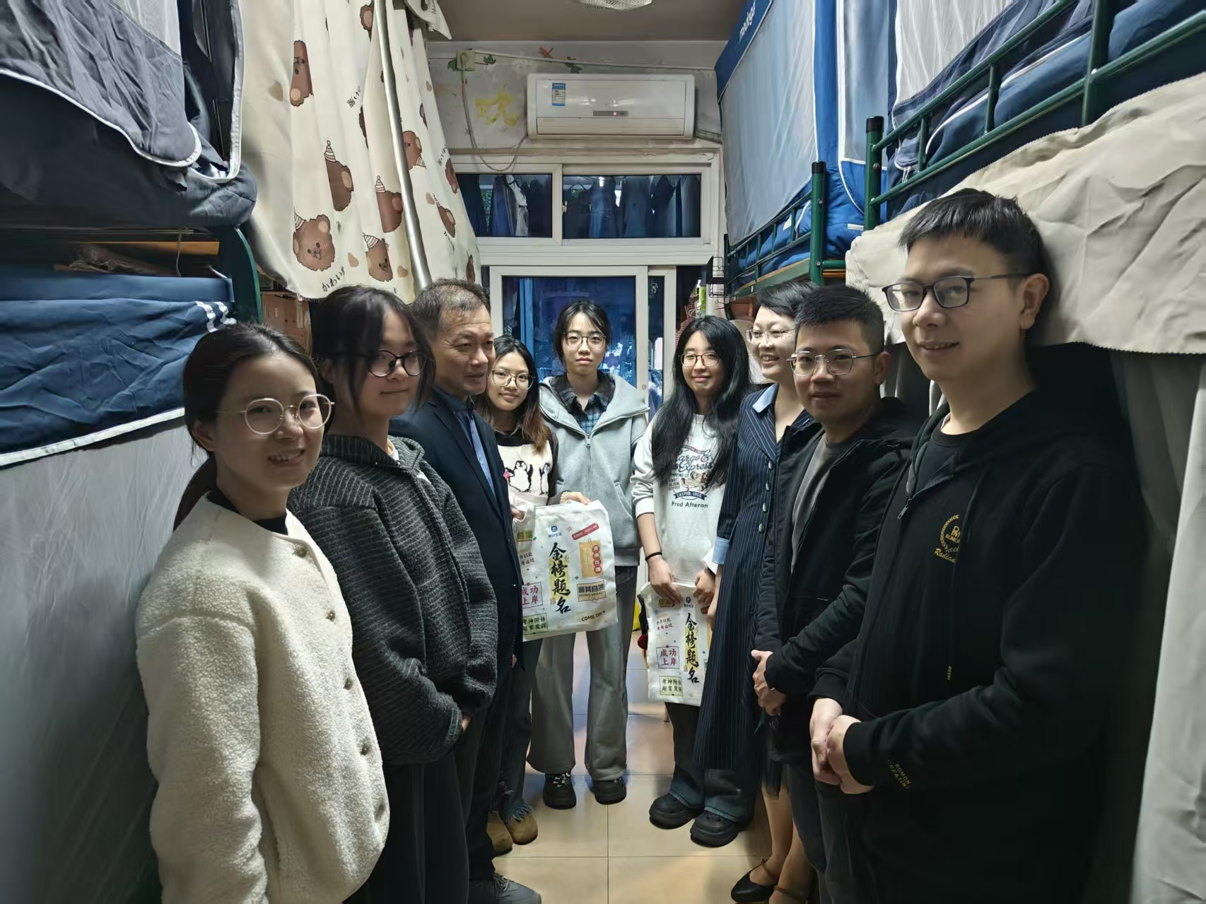 在2026届考研学子备战的关键阶段,12月10日下午,泉州师范学院物理与信息工程学院开展“研路同行,为梦护航”考研加油行动。学院党委书记吴丽双、党委副书记洪荣文及辅导员一行,深入学生宿舍走访慰问,为正在紧张备考的学子们送上定制加油礼包,传递学院的温暖与支持。