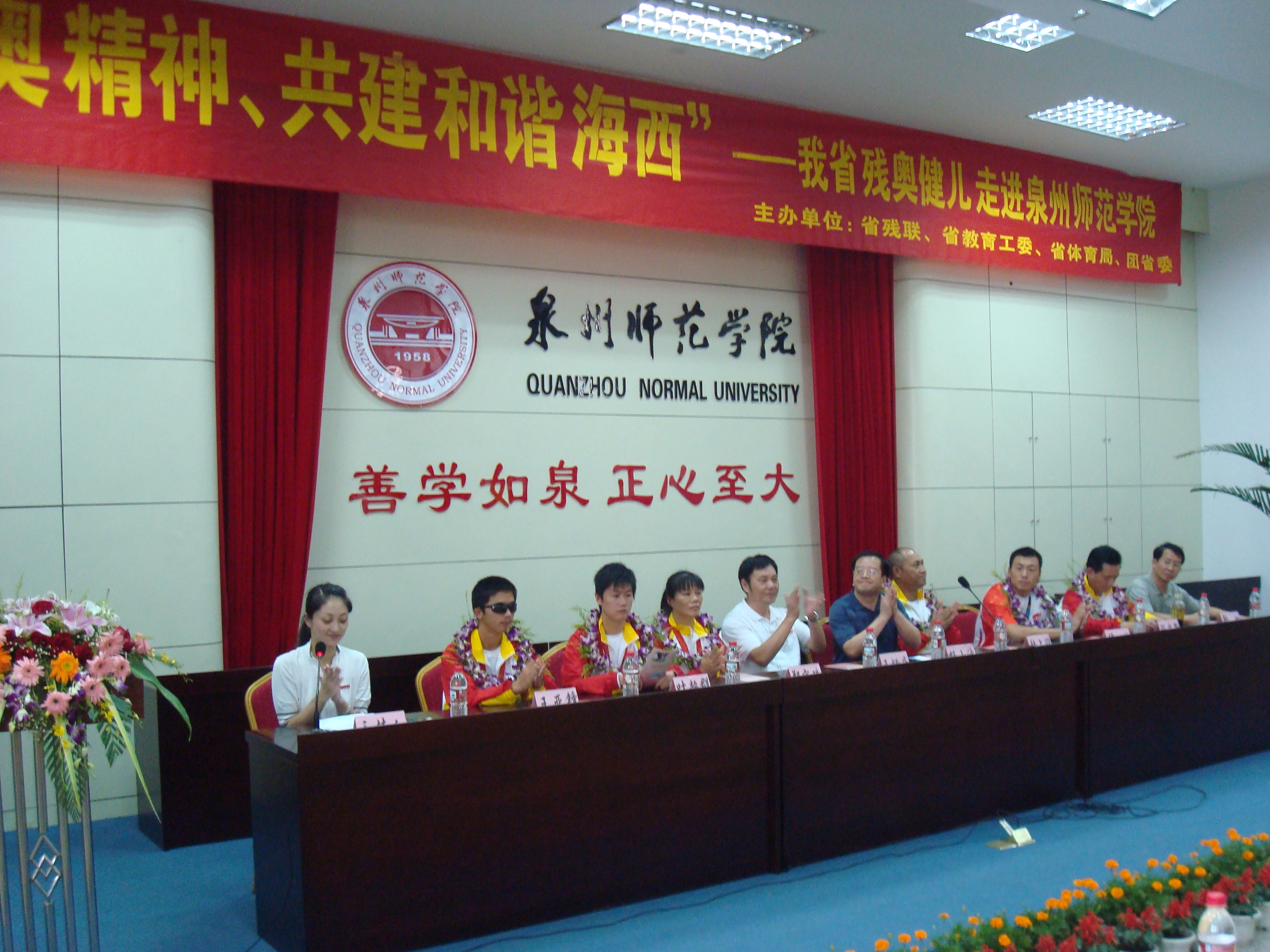 会上,王炳庆致辞。他代表我校全体师生员工向残奥运动员表示最诚挚的祝贺。他希望全体师生员工向残奥健儿们学习,将残奥健儿的拼搏精神转化为推进师院发展、提高学生素质的动力,鼓励广大师生努力学习,勤奋工作,超越自我,报效祖国,为共建和谐海西贡献一份力量。同时,他呼吁广大师生在日常生活中多关注残疾人事业,多给残疾人关怀和帮助,使残疾人这一特殊的社会群体更好地融入中国特色社会主义事业建设当中。