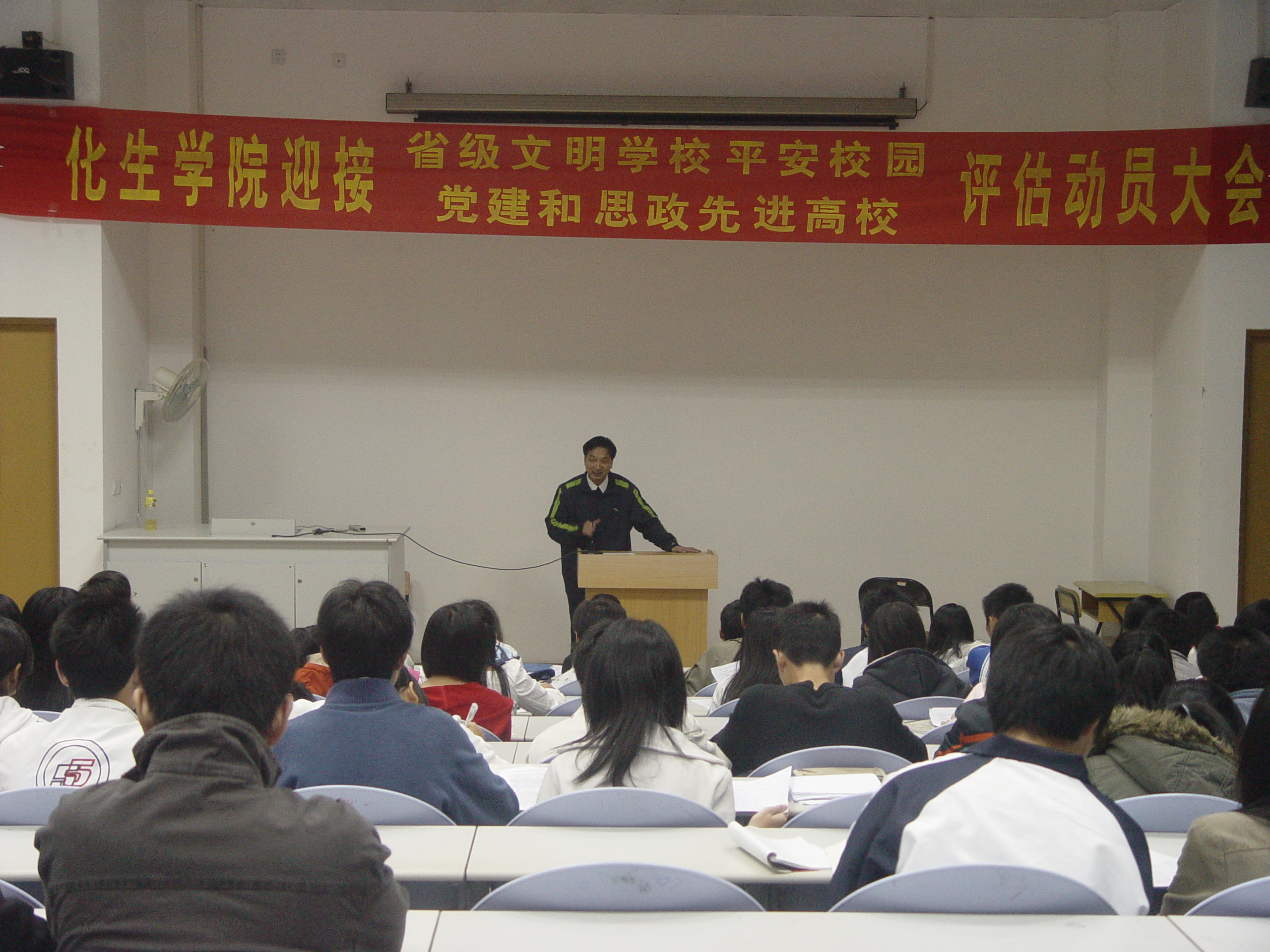 福建省第十届(2006—2008年度)文明学校届终考评工作即将开始,为了共促我校文明学校创建工作步上新台阶,出色完成学校交给的任务。12月7日晚上,化生学院在理工楼举行了动员大会。