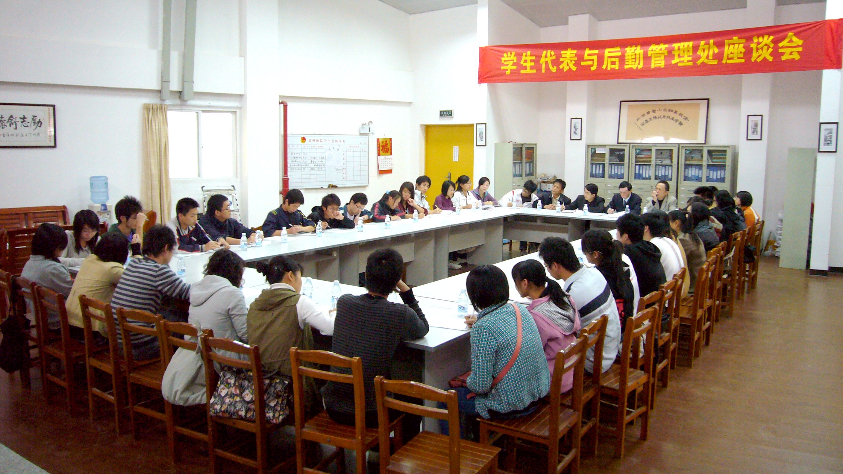 为促进学校发展,及时、有效地解决我校在后勤保障方面存在的问题,124日下午,我校学生代表与后勤管理处座谈会在学生活动中心二楼校学生会办公室举行。活动由校团委会、学生会主办。后勤管理处、后勤集团相关负责人以及来自各二级学院近50名学生代表出席了座谈会。