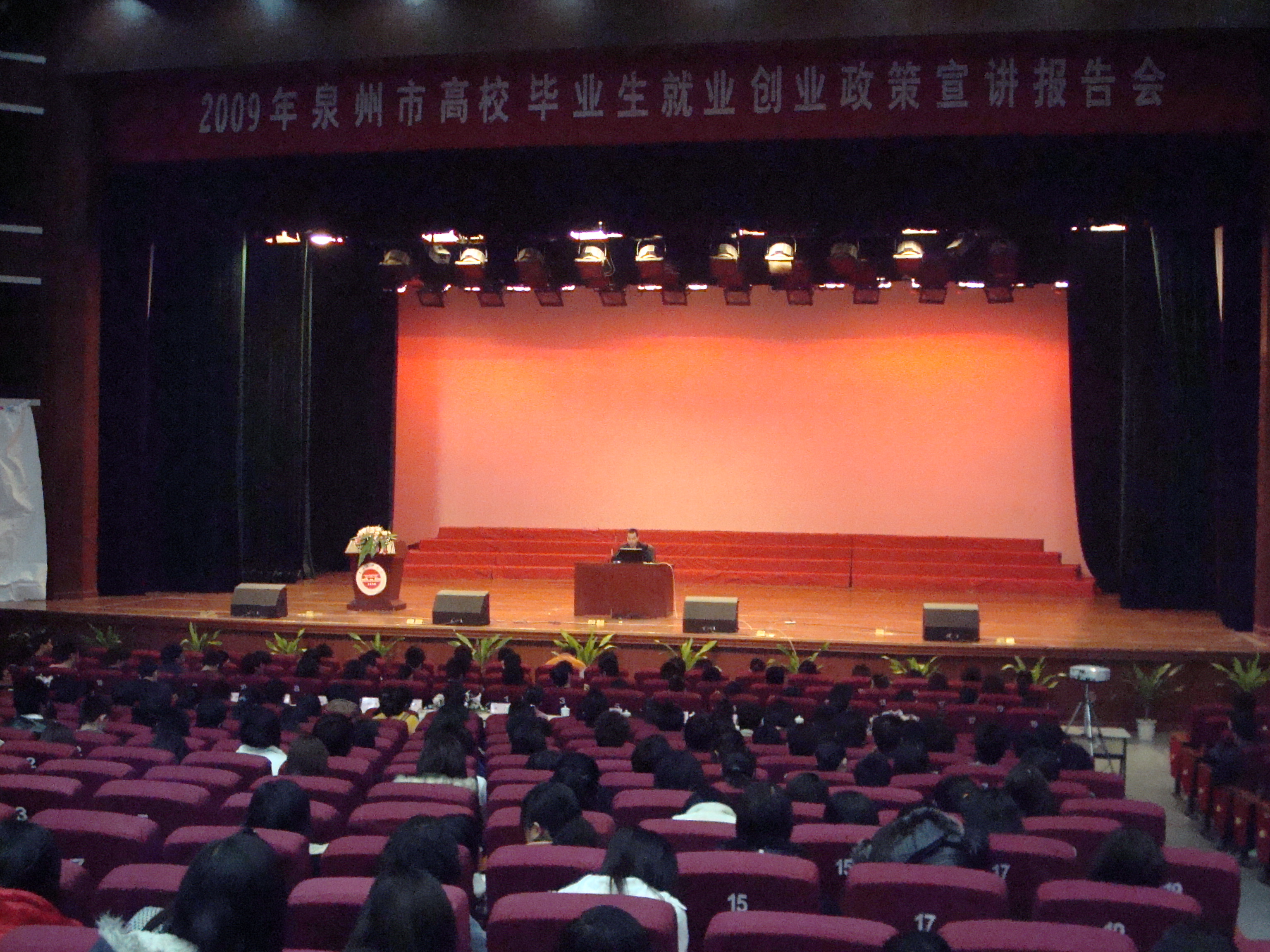 2月22日上午,泉州市高校毕业生就业创业政策宣讲团在我校陈祖昌大礼堂举行首场报告会。本次宣讲活动由中共泉州市教育工委、泉州市人事局、泉州市教育局、泉州市劳动和社会保障局、共青团泉州市委、中国人民银行泉州市中心支行、泉州市学生联合会主办,我校校团委承办。校党委副书记张舟,黎明职业大学党委副书记庄一民,泉州儿童发展职业学院党委副书记、副院长陈雅芳,相关校院团委书记、毕业班辅导员、学生会干部代表、毕业班学生代表近1300人到场听取报告。