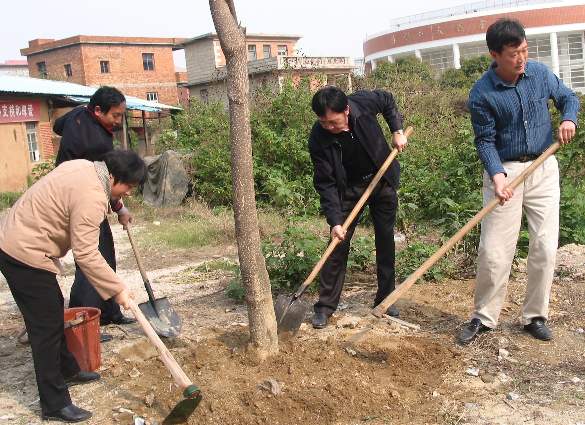 昨天是第31个全民义务植树节。下午3时许,副院长王炳庆带领后勤管理处、后勤服务集团干部、职工和学生共40多人,在东海校区山顶公园入口处参加义务植树活动,种下30多棵盆架子,为东海校区校园建设增添了一道绿色景观。在和煦的春风中,一棵棵树木昂然挺立,焕发出勃勃生机。