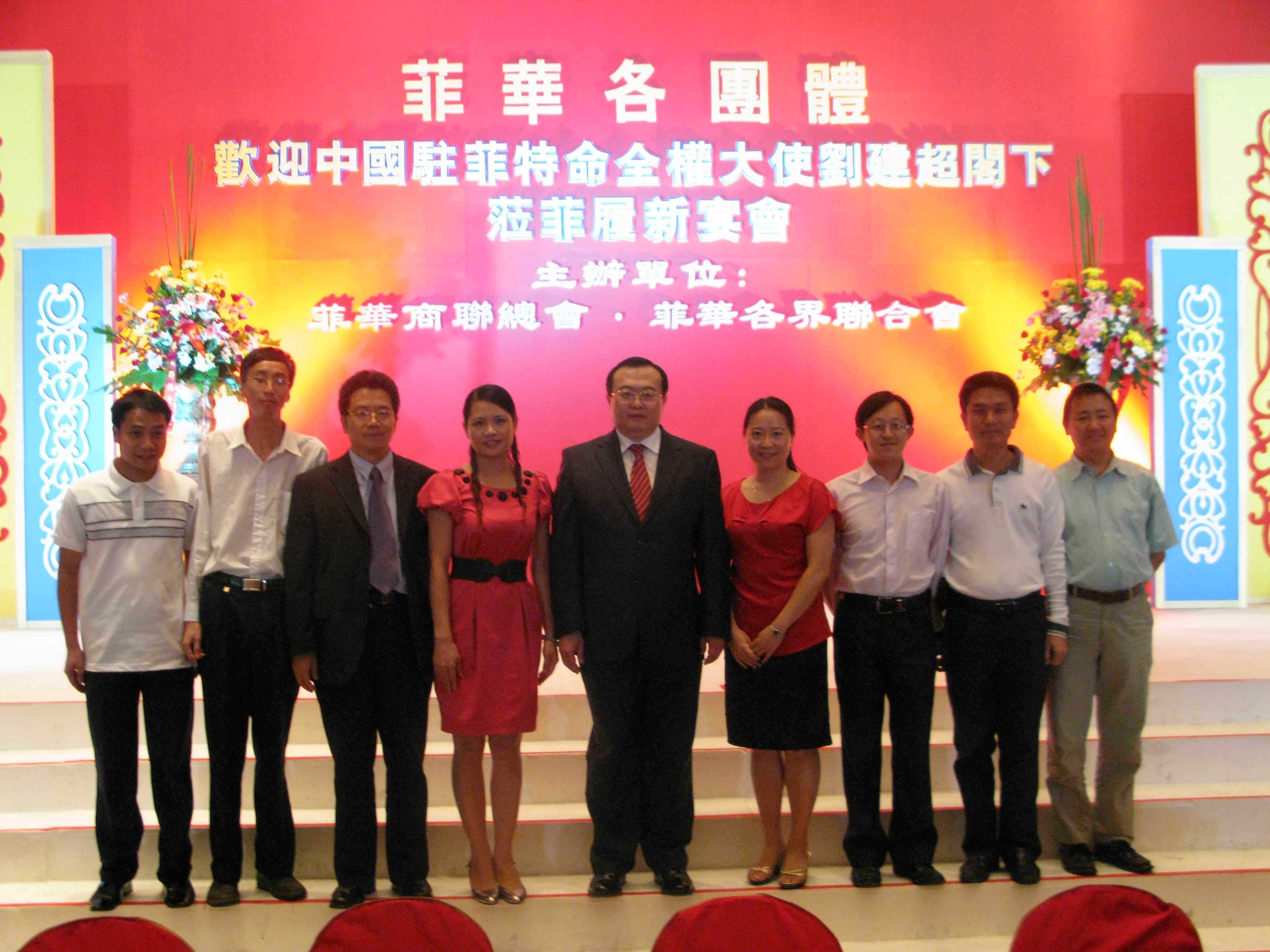 2009年3月16日晚上,菲华商联总会及菲华各界联合会举办欢迎宴会欢迎中国驻菲律宾大使刘建超莅菲履新,菲华社会各侨领及赴菲志愿者代表等参加了欢迎宴会。