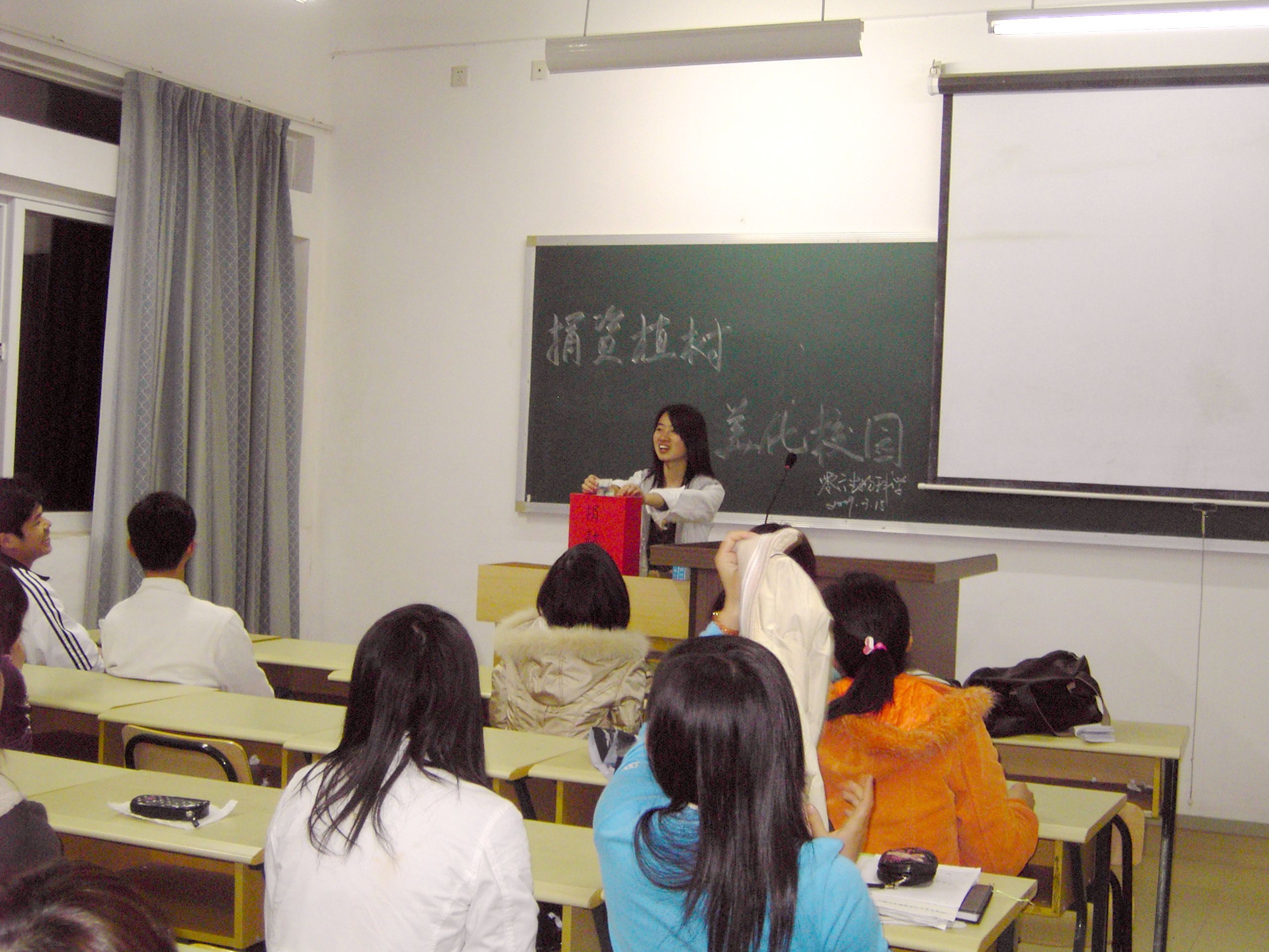 每年的3月是植树月。3月15日晚,化学与生命科学学院开展以班级为主体的“捐资植树、美化校园”为主题的班会。