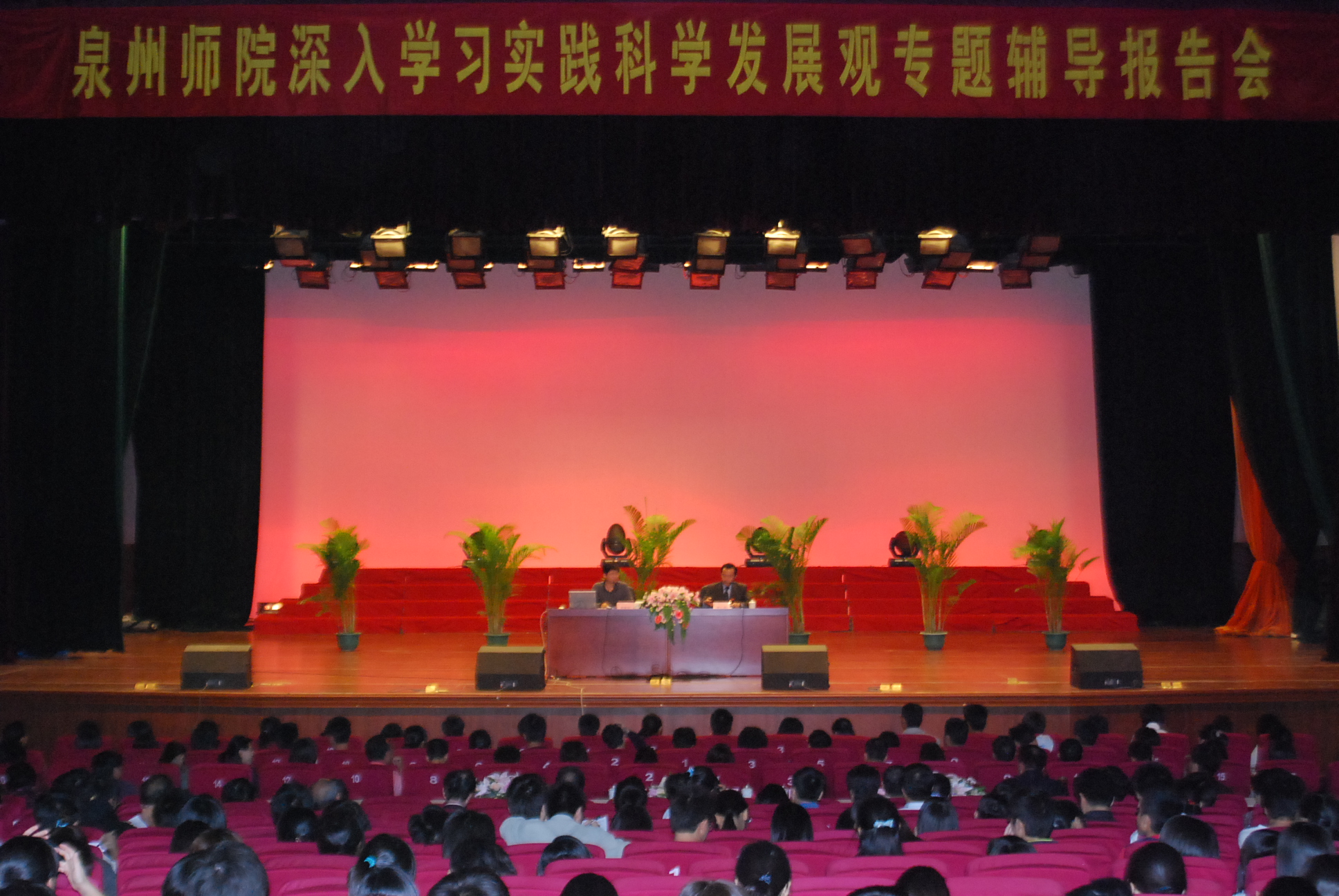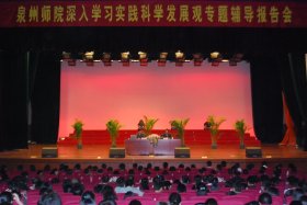 3月底以来,我校上下掀起了深入学习实践科学发展观活动热潮。为全面、准确地理解和把握科学发展观的科学内涵、精神实质和基本要求,推动学习实践活动深入开展,我校邀请厦门大学党委宣传部副部长徐进功教授在陈祖昌大礼堂做题为“深刻理解科学发展观的历史地位、科学内涵和根本要求”的辅导报告。校领导黄子杰、张舟、王炳庆、林华东、王晓东,学校全体党员及部分入党积极分子共1300多人听取了报告。报告会由校党委副书记张舟主持.